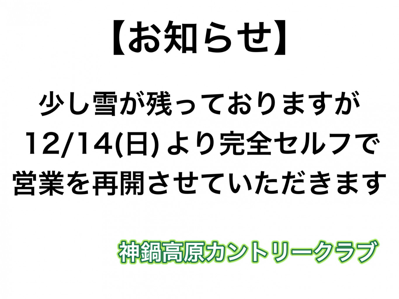 明日までクローズ予定にしておりましたが、プレー可能な状況となりましたので、 12月14日(日)より完全セルフにて営業を再開いたします!